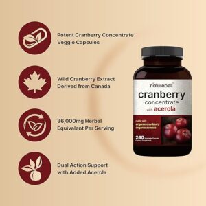 NatureBell Cranberry Pills 36,000mg with Acerola 240 Veggie Capsules