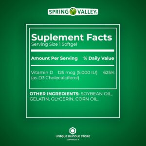 - SupplementSpring Valley Vitamin D3 125 mcg 5000 IU 400 Softgels৳ 2,850Rated 0 out of 5One 400 count bottle of Spring Valley 5,000 IU Vitamin D3 Softgels