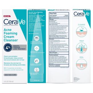 - [ ACNE FACE WASH WITH BENZOYL PEROXIDE ] This benzoyl peroxide acne treatment face wash clears acne, pimples, whiteheads, and blackheads, preventing new acne and promoting healing. Non-sealed.