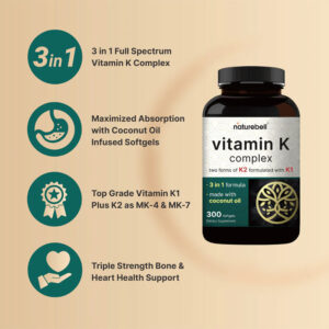- Replenish natural vitamin K levels with NatureBell’s complete vitamin K complex, combining all forms helps with overall nutrient uptake and minimizes waste.