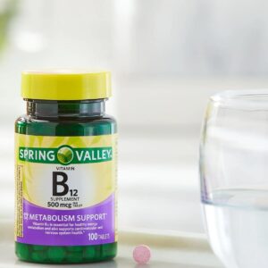 SUPPORTS ENERGY METABOLISM: Our SPRING VALLEY VITAMIN B12 TABLETS are formulated to support energy metabolism, helping your body convert food into energy efficiently. This essential function is crucial for maintaining daily energy levels and overall vitality