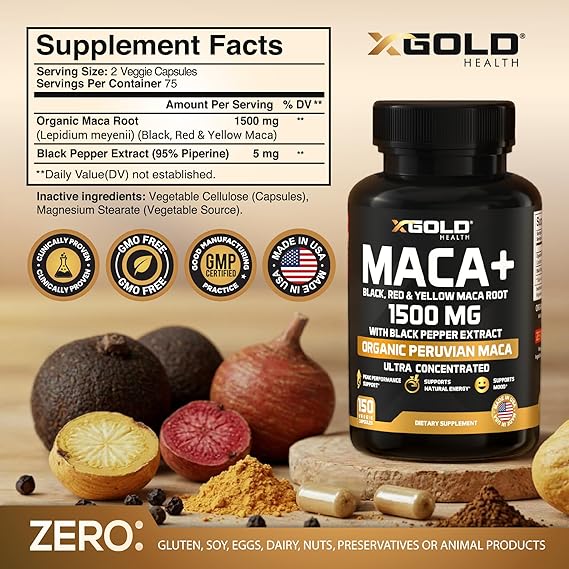 X Gold Health Organic Maca Root Capsules Black Yellow Red Strongest 1500 mg 150 CapsulesX Gold Health Organic Maca Root Capsules Black Yellow Red Strongest 1500 mg 150 Capsules